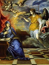 - 1º. No primeiro Mistério contemplamos A Anunciação do Anjo Gabriel á Nossa Senhora.